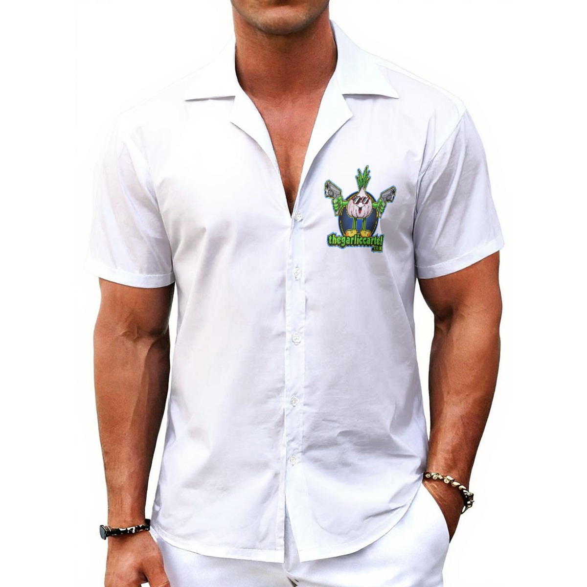 - Short sleeve, lapel collar, button closure