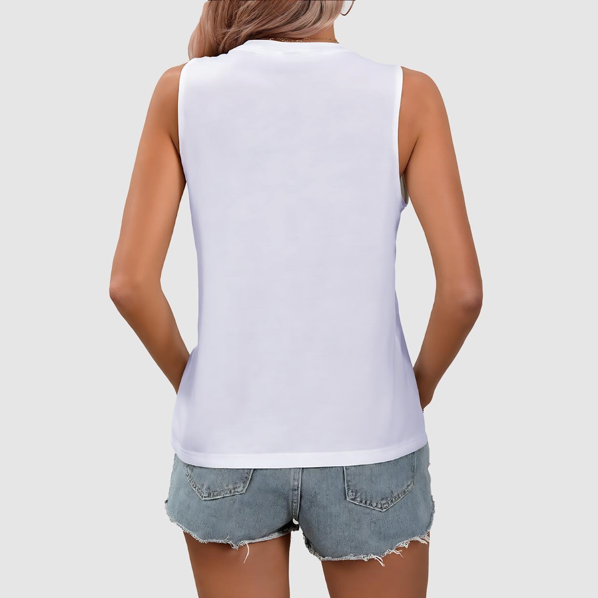 This sleeveless tank top is crafted from premium cotton-feel polyester, offering the softness and breathability of cotton with added lightness and durability. The flattering V-neckline highlights the collarbone, while the relaxed fit creates an effortlessly casual vibe. Perfect for pairing with shorts, skirts, or joggers – ideal for everyday wear or summer outings.